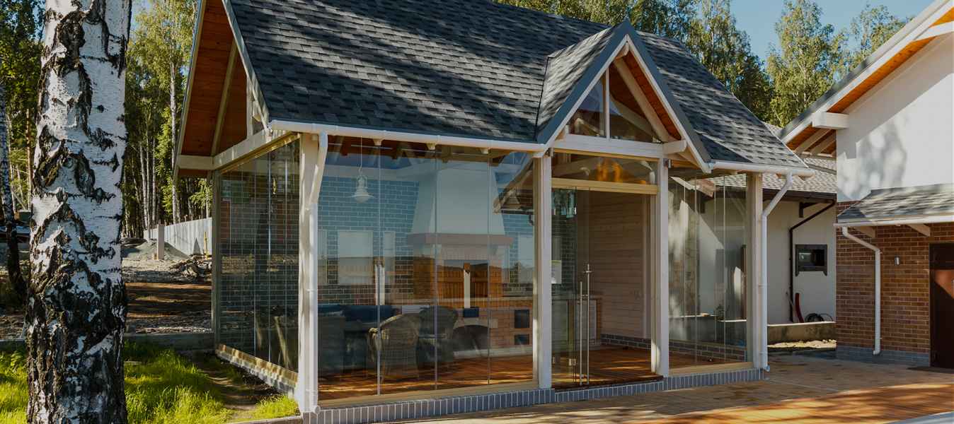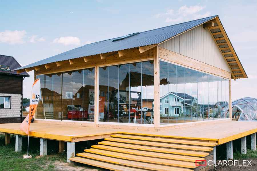 - частных домов (витражи, входные группы, фасады, безрамное остекление и пр.)